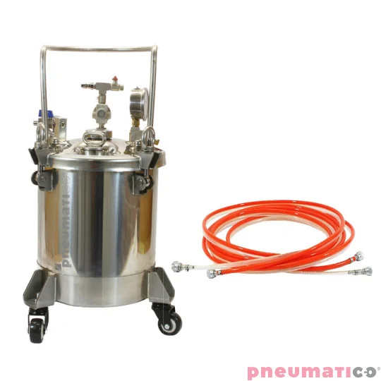 Zbiorniki ciśnieniowe PNEUMATICO to rozwiązanie dla profesjonalistów, którzy oczekują najwyższej jakości, efektywności i bezpieczeństwa w pracy. Duża pojemność zbiornika pozwala na malowanie dużych obiektów, a użytkownik pracuje lekkim pistoletem natryskowym, ponieważ materiał natryskowy jest transportowany do pistoletu pod stałym i równym ciśnieniem.