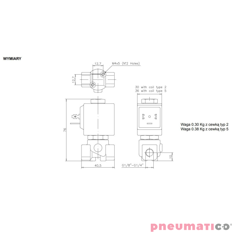 Zawór RQE TYP ED61 G1/4" DN3.0 2/2 mosiądz VITON RQS RQEED613.0FG02MSV bez cewki
