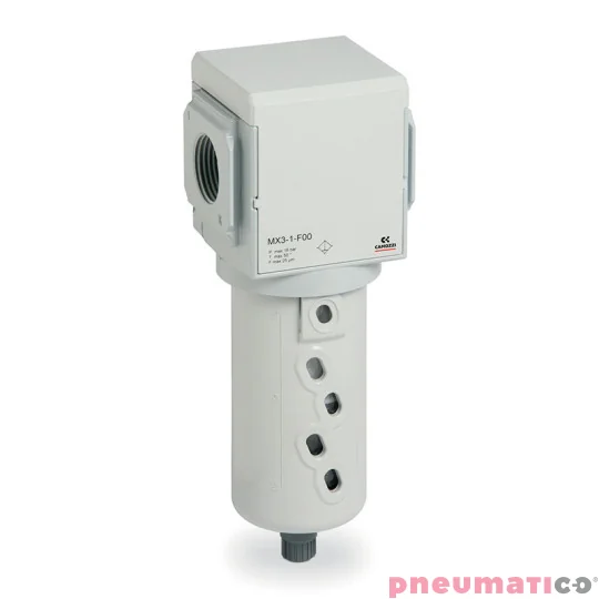 Komponenty serii MX to nowoczesne rozwiązania przeznaczone do uzdatniania sprężonego powietrza w instalacjach pneumatycznych. Charakteryzują się kompaktową, liniową konstrukcją oraz wysoką wydajnością, co pozwala na skuteczne usuwanie zanieczyszczeń, kondensatu i oleju z układu.