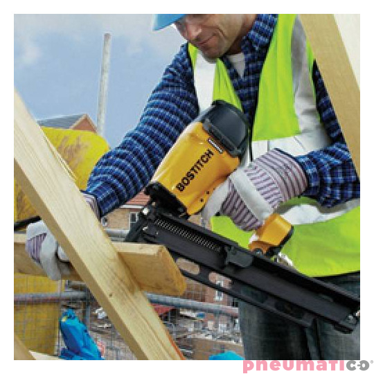 Gwoździarka pneumatyczna Stanley Bostitch F33PT-# wbija gwoździe łączone papierem lub drutem pod katem 34 stopni. Maksymalna długość gwoździa wynosi 90mm. Ponadto gwoździarkę można wyposażyć w specjalny nos dzięki któremu będzie mogli wbijać gwoździe do złącz ciesielskich. Prosty system naprowadzający gwóźdź w otwór złącza ciesielskiego usprawni proce wbijania gwoździa.