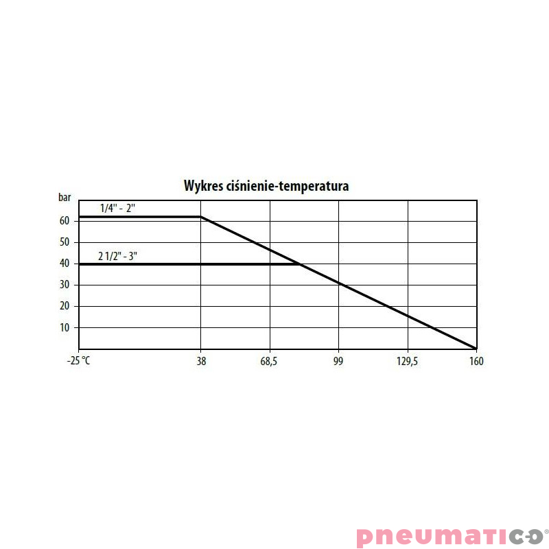 - Ciśnienie nominalne: DN8 do DN50 - 63 bar, DN65 do DN80 - 40 bar