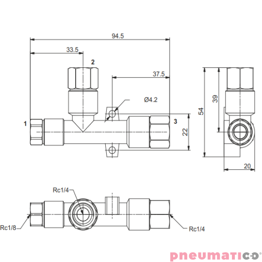 Jednostopniowy generator podciśnienia (eżektor) T14 PNEUMAX 19T14.S.15.HV.UU