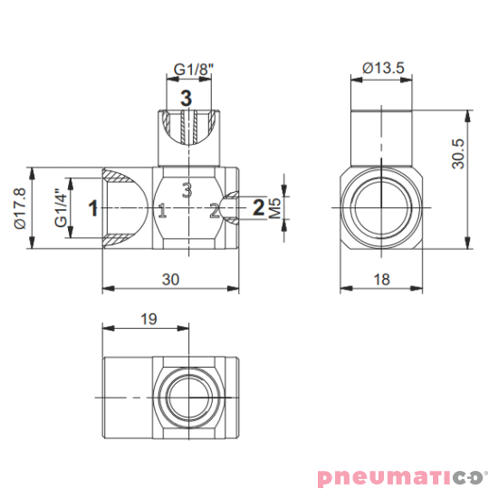 Jednostopniowy generator podciśnienia (eżektor) M5 PNEUMAX 19M05.S.08.SS.L0