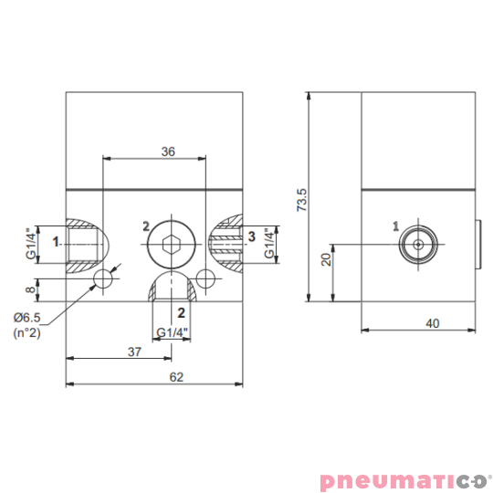 Jednostopniowy generator podciśnienia (eżektor) G1/4" PNEUMAX 19M14.S.10.SS.E0