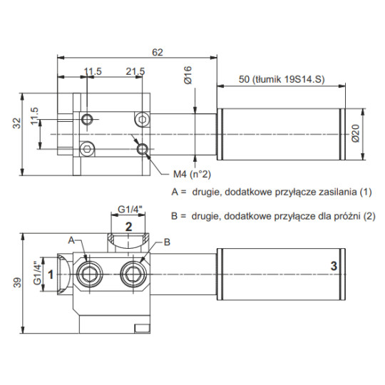 Jednostopniowy generator podciśnienia (eżektor) G1/4" PNEUMAX 19M14.S.12.SL.ES