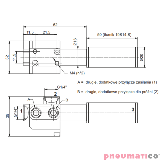 Jednostopniowy generator podciśnienia (eżektor) G1/4" PNEUMAX 19M14.S.17.SL.ES