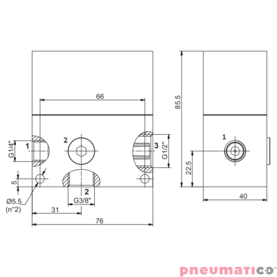 Jednostopniowy generator podciśnienia (eżektor) G3/8" PNEUMAX 19M38.S.14.SS.E0