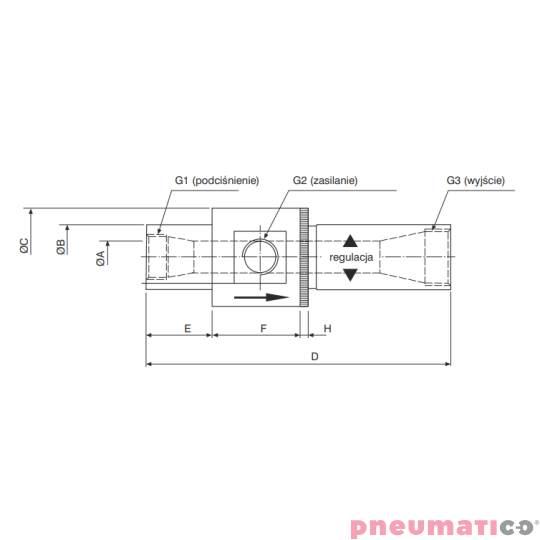 Generator podciśnienia o regulowanej wydajności (eżektor) - transport próżniowy G1/4" PNEUMAX 19M14.S.00.SS.RG