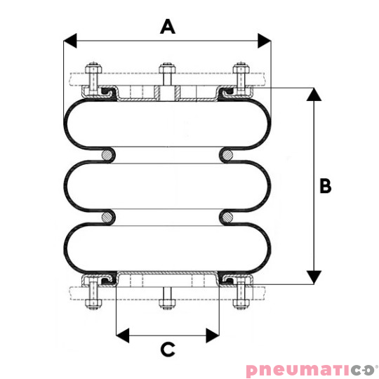 Kompatybilna z siłownikiem mieszkowym Dunlop 6'x3 o wymiarach: