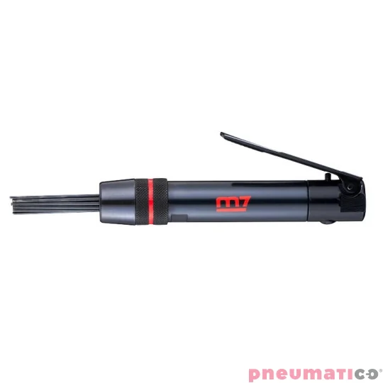 Mighty Seven SN-1350 to kompaktowy i niezwykle wydajny pneumatyczny młotek igłowy (needle scaler) zaprojektowany do szybkiego usuwania rdzy, farby, zgorzeliny spawalniczej oraz innych trudnych zanieczyszczeń. Dzięki połączeniu bardzo niskiego poziomu wibracji, lekkiej konstrukcji i wysokiej częstotliwości udarów narzędzie zapewnia wyjątkowy komfort i precyzję pracy nawet podczas długich sesji roboczych. Urządzenie jest idealnym wyborem dla profesjonalistów zajmujących się renowacją, spawaniem, obróbką metalu oraz przygotowaniem powierzchni stalowych. Jego kompaktowa budowa umożliwia dotarcie w trudno dostępne miejsca, a wysoka kultura pracy znacząco redukuje zmęczenie operatora.