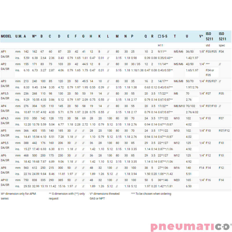 | AP2A/BDA63NBR | 1/4" | 63 mm |