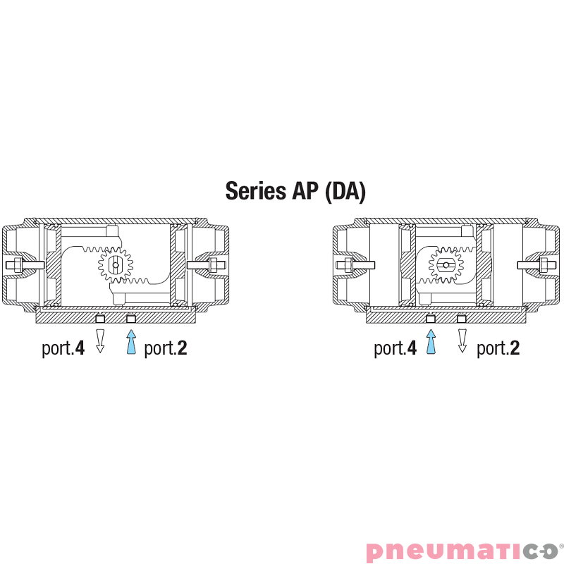 - Konstrukcja z podwójnym tłokiem i zębnikiem zapewnia zwartą konstrukcję, symetryczny montaż tłoka. Jedna kompaktowa konstrukcja z identycznym korpusem i zaślepkami końcowymi dla modelu dwustronnego działania i ze sprężyną powrotną.