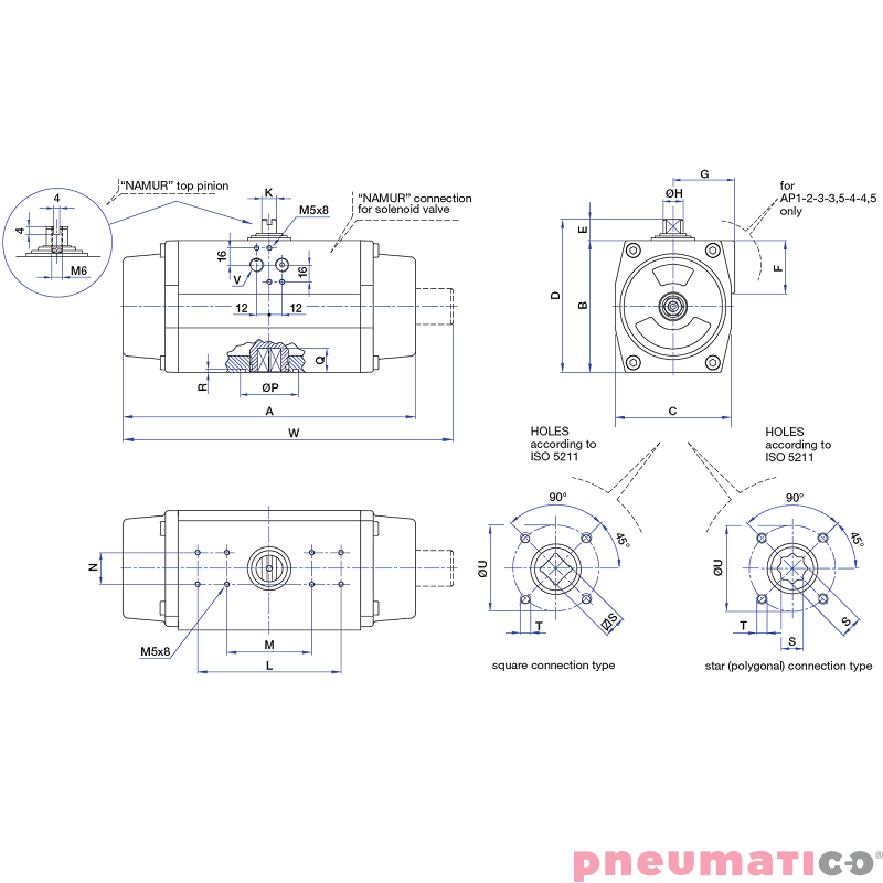 Pneumatyczny napęd obrotowy podwójnego działania AP45DA 115 VITON SIRCA