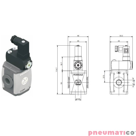 Gwint z technopolimeru. Przyłącze robocze 1/4". Regulowany próg przełączania 2-10 bar.