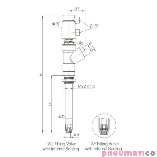 Zawór nalewający nierdzewny NC 1AF-20-130 ESG